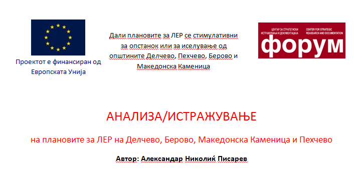 АНАЛИЗА/ИСТРАЖУВАЊЕ на плановите за ЛЕР на Делчево, Берово, Македонска Каменица и Пехчево