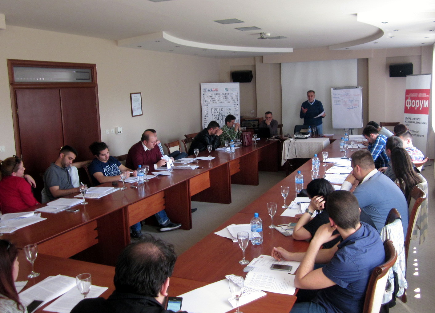 Школата ја отвори извршниот директор на Форум ЦСИД, Слаѓан Пенев, по што следуваше предавањето на проф. д-р Љубомир Фрчкоски на тема Политичко и партиско кое беше проследено со работа во групи.